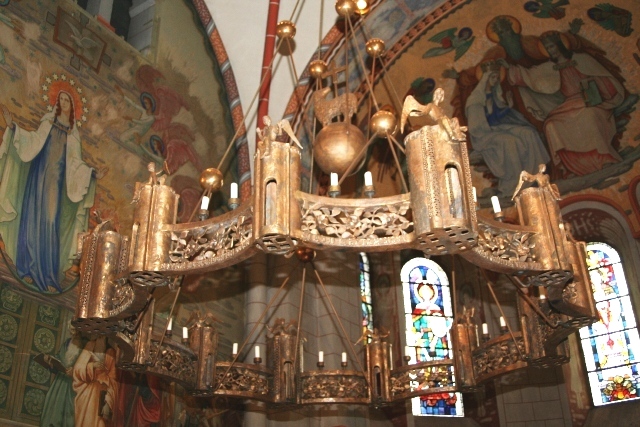 imposanten Kronleuchter. Er stellt das Himmlische Jerusalem dar und hängt über dem Hochaltar der