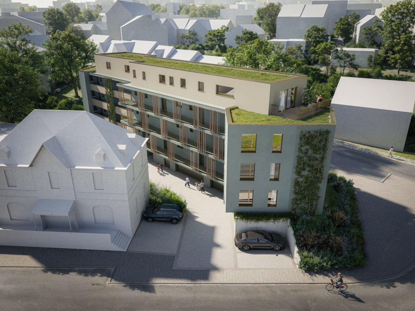 Zwischen den beiden Standorten, an der Koblenzer Straße (3), erstellt ein Bauträger ein kantiges Objekt mit exklusi-